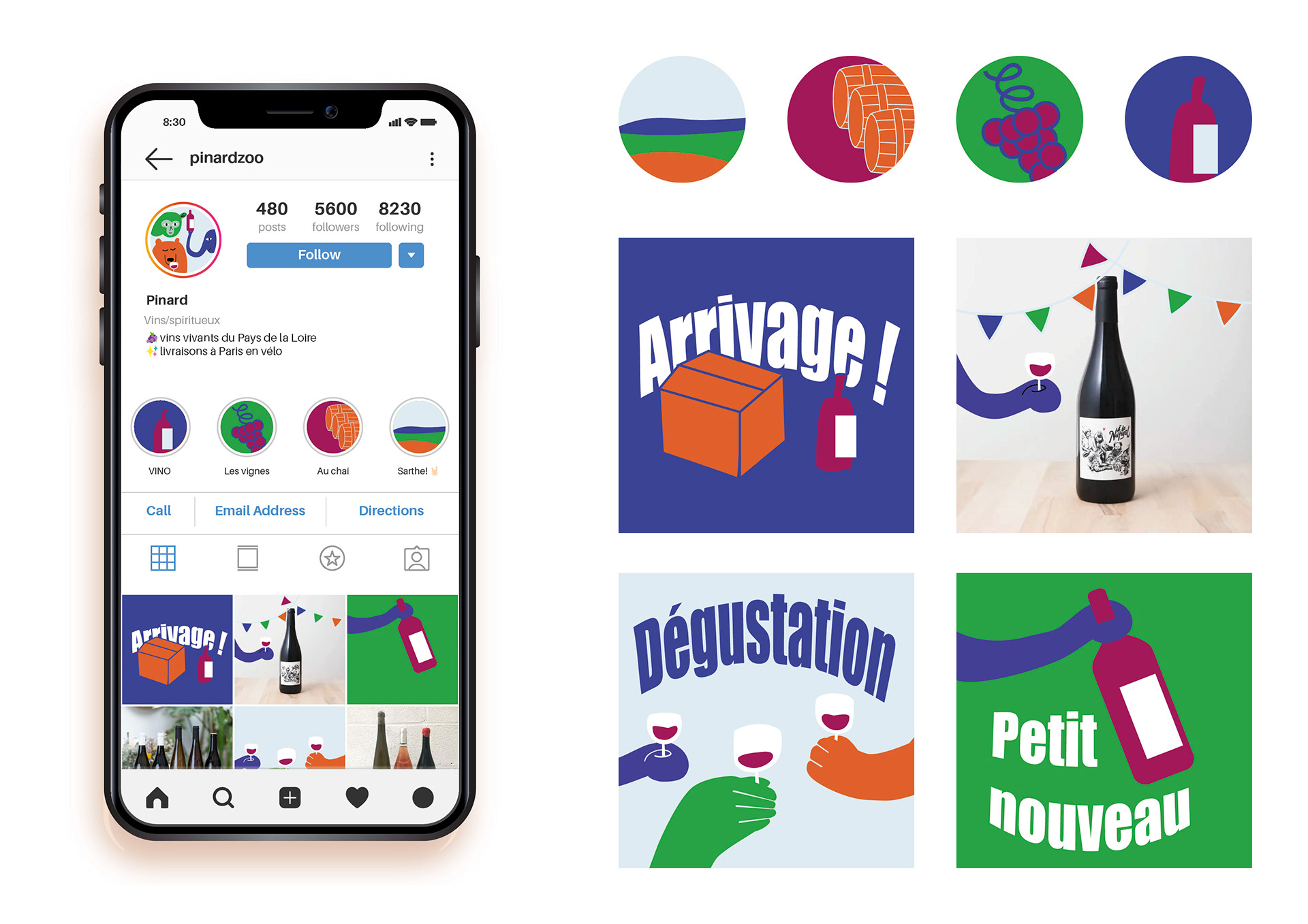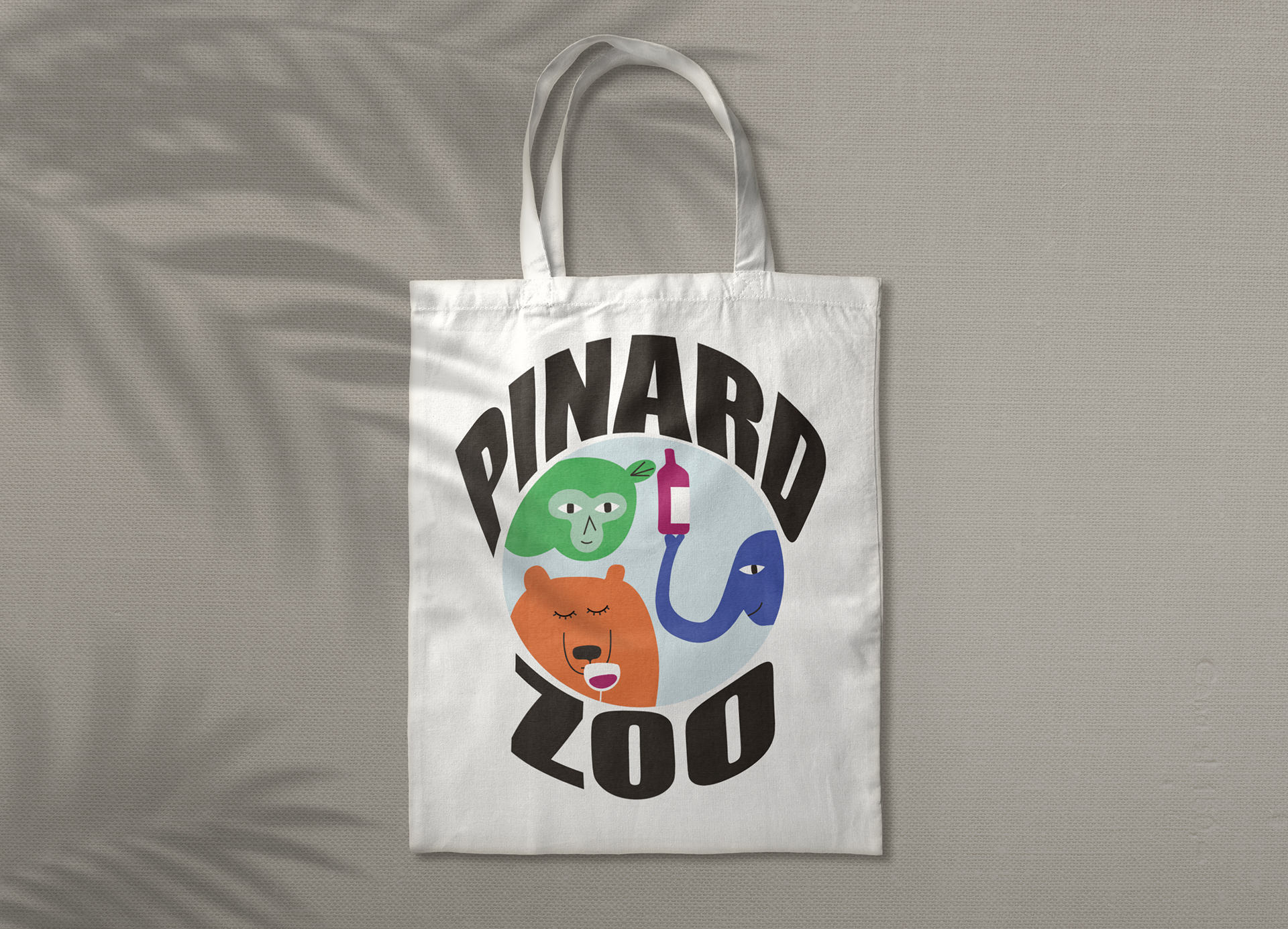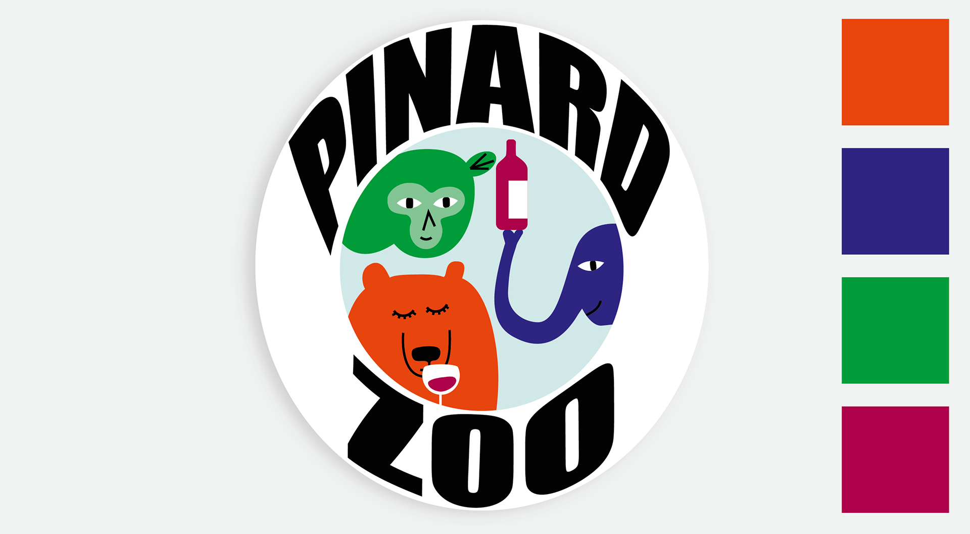 Identité visuelle joyeuse et colorée pour l'entreprise Pinard Zoo, qui met en relation des vignerons du Pays de la Loire et des consommateurs par le biais des AMAPs et des circuits courts.