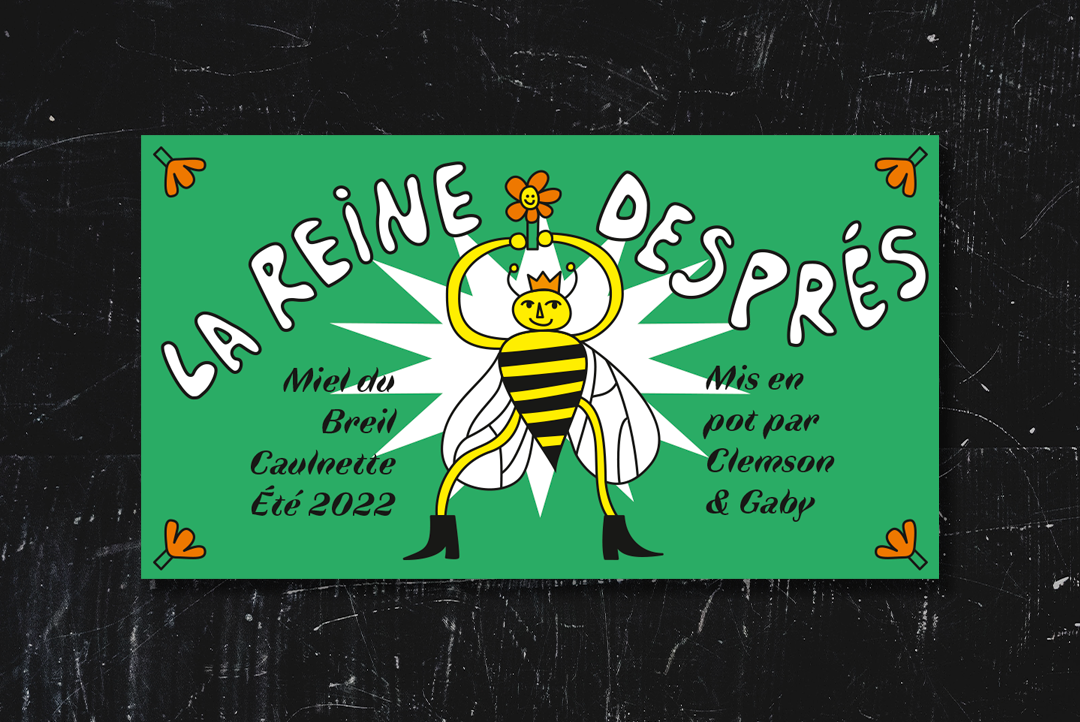 Création d'étiquettes illustrées et d'une animation pour le miel "Reine Després".